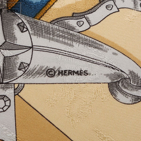 ■エルメス■ カレ90 スカーフ「L'INSTRUCTION DUROY」シルク ベージュ ブルー ゴールド 【HERMES】(34021303)